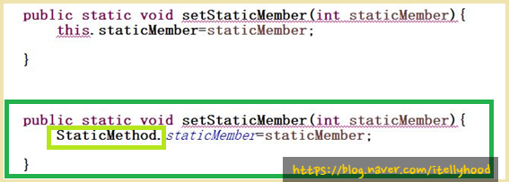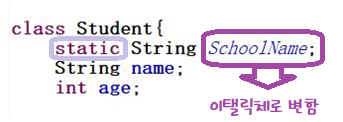 그러므로 static 변수를 사용할 때 쓸 수 없는 인스턴스 변수들이 있다는 것에 주의