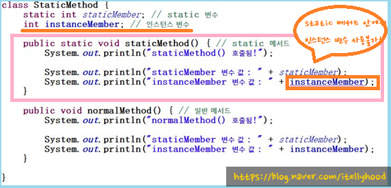 1) static 메서드 내에서는 인스턴스 변수 사용 불가!!!!!