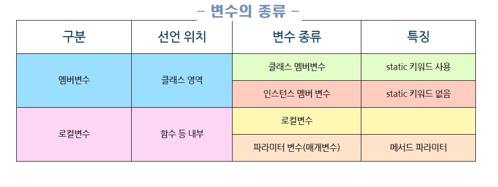무슨 변수의 종류가 이렇게도 많담...
