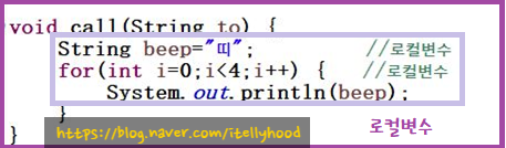 1) 로컬 변수 메서드가 호출되면 메서드가 생성, 메서드가 끝나면 끝난다